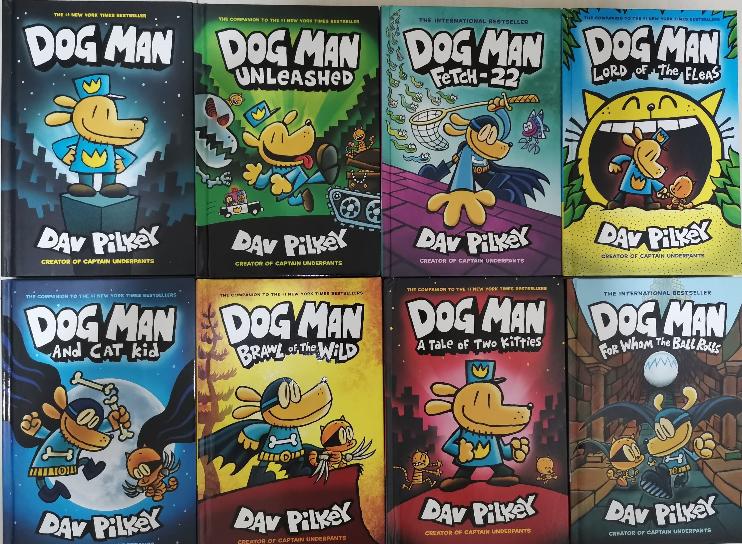 And Dav Pilkey's new series, Cat Kid Comic Club too. All the Dog Man books in order: Book 1: Dog Man (2016) Book 2: Dog Man Unleashed (2017) Book 3: Dog Man: A Tale of Two Kitties (2017) Book 4: Dog Man and Cat Kid (2018) Book 5: Dog Man: Lord of the Fleas (2018) Book 6: Dog Man: Brawl of the Wild (2019) Book 7: Dog Man: For Whom the Ball Rolls ...