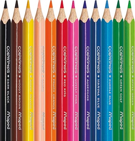 Maped Color'Peps Triangular Jumbo Colored Pencils, Assorted Colors, Pack of 12 (834049ZV) Visit the Maped Helix USA Store 199 ratings | 6 answered questions About this item Bright colored pencils with soft and resilient lead, provide smooth coloring and blending fun! 24ct-48ct colored pencils includes neon colors & metallic gold & silver.