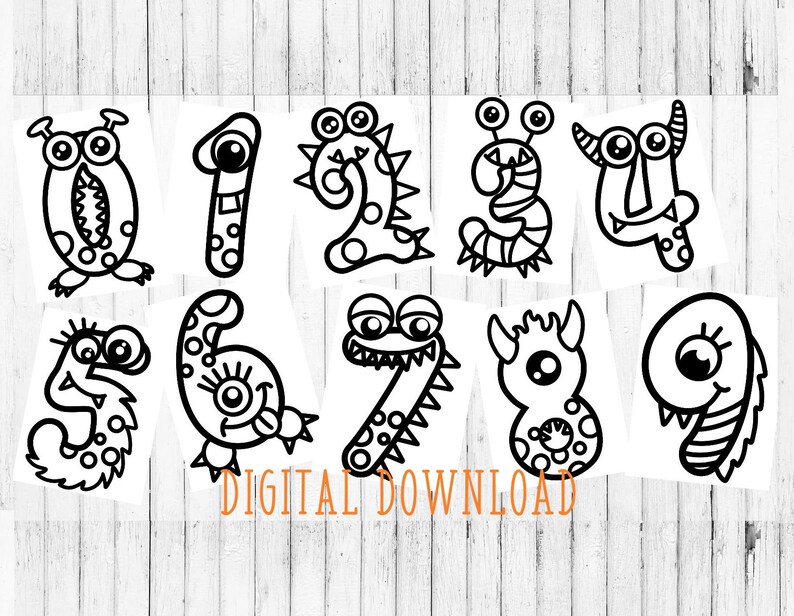 Printable Number Coloring Page-Instant Download-Monster Numbers-Activity Book-First Book-Math-Work Sheet-Booklet-PDF